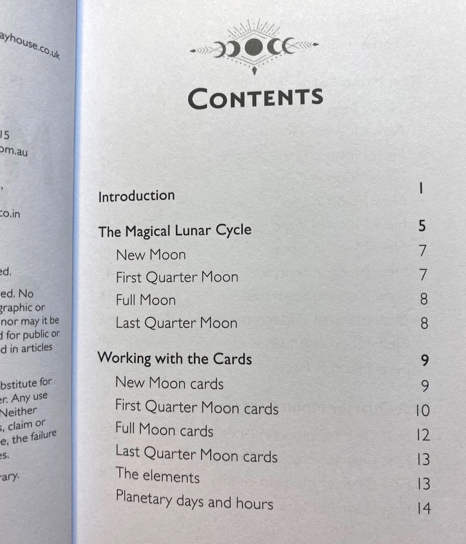 가이드 북의 내용은 역시나 각 달의 변화되는 모양과 별자리의 구성으로 나눠서 설명이 되어 있습니다. 기존에 문올로지 오클에서도 그렇듯이 긍정적으로 해석되는 부분이 많은 카드인 거 같습니다. 서브로 사용하기에 좋은 오라클 이겠죠.. 역시!!
