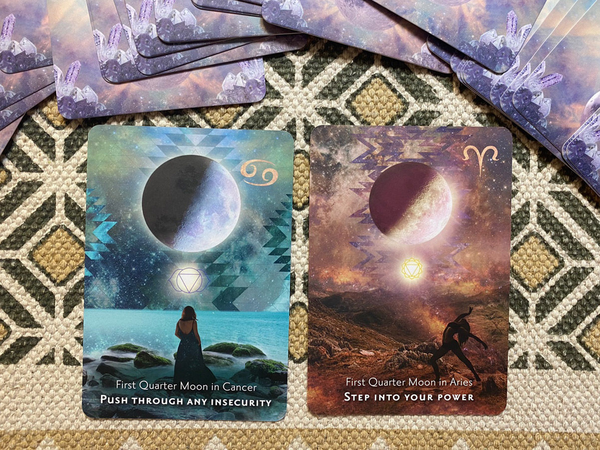 저는 무엇보다 1탄의 문올로지 오라클 보다 이 번에 나온 카드가 뒷 면이 심하게 마음에 듭니다. 전에는 달의 변화 주기를 나타냈다면 이번에는 뭔가 신비로운 분위기가 더 풍기는 느낌의 카드로 나온 거 같아요. 카드의 앞면 일러스트도 뭔가 더 심플하면서 컬러감이 더 다양한 모습을 보이는 것 같아요. 이런 느낌의 카드를 좋아하신다면 소장하셔도 괜찮아 보입니다. 무엇보다 점성학에 관심이 있으시다면 그것과 연관된 해석이 가능하기 때문에 다양한 해석이 나올 수 있다는 장점이 있겠죠.