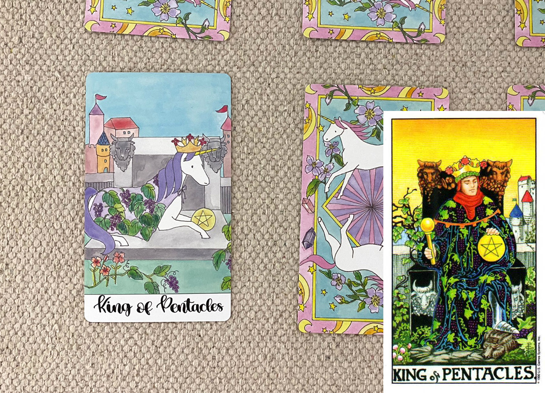 자신의 왕좌에 앉아 있는 왕의 모습이 있습니다. 기본적으로 물질적인 힘을 나타내는 이 카드는 현실적인 수완도 있고 사회적인 위치도 있는 사람을 나타내는 카드입니다. 오늘 여러분의 인생에서 이런 영향력을 주는 인물이 등장할 수도 있겠습니다. 혹은 여러분이 그런 영향력을 주는 인물일 수도 있습니다. 경험이 있고 성공적인 지도자의 모습을 보일 수도 있습니다. 현명한 판단을 내리고 믿을 맏한 사람이라는 평가를 받는 오늘이 되실 수 있습니다. 남들이 인정해주는 그런 일을 시작하실 수도 있습니다. 그러나 이 킹펜타클의 카드는 움직임이 크지 않습니다. 그렇기에 행동력이 강한 카드는 아닙니다. 인내심도 있고 묵직함도 있으나 미첩하게 행동은 못하는 날이 될 수 있는거죠. 장점과 단점 모두 공존하는 날이 될 수 있습니다.