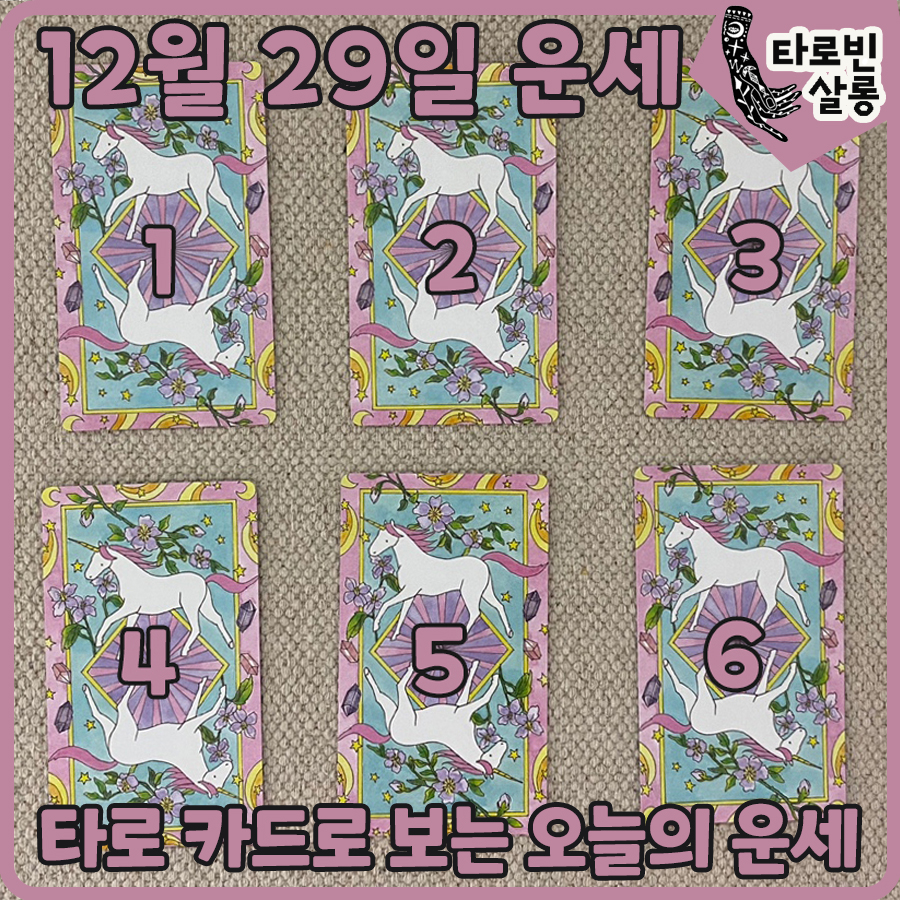 숨가쁘게 일주일이 또 지나가고 있습니다. 12월 29일 하루의 운을 타로 카드로 뽑아보도록 할게요. 그럼 마음을 집중하시고 아래 6개의 숫자 중에 마음에 드시는 번호 하나를 선택해 보세요. 준비 되셨나요? 그럼 오늘도 즐거운 하루 보내세요!