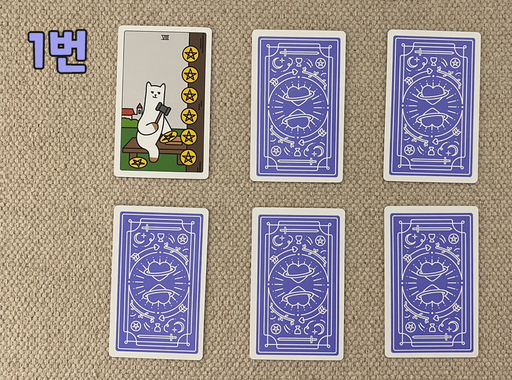 오늘 타로 카드로 보는 하루 운세에 사용할 카드는 어플로도 유명한 '헬로우 봇' 타로 카드입니다. 이 카드 역시 초반에 텀블벅으로만 판매해서 중고가가 판매가를 넘는 시기도 있었던 카드입니다. 귀여운 캐릭터들이 넘쳐나는 카드로 하루 운세 뽑아보도록 하겠습니다. 정신을 집중하시고~!! 마음에 드는 번호를 선택해 주세요.