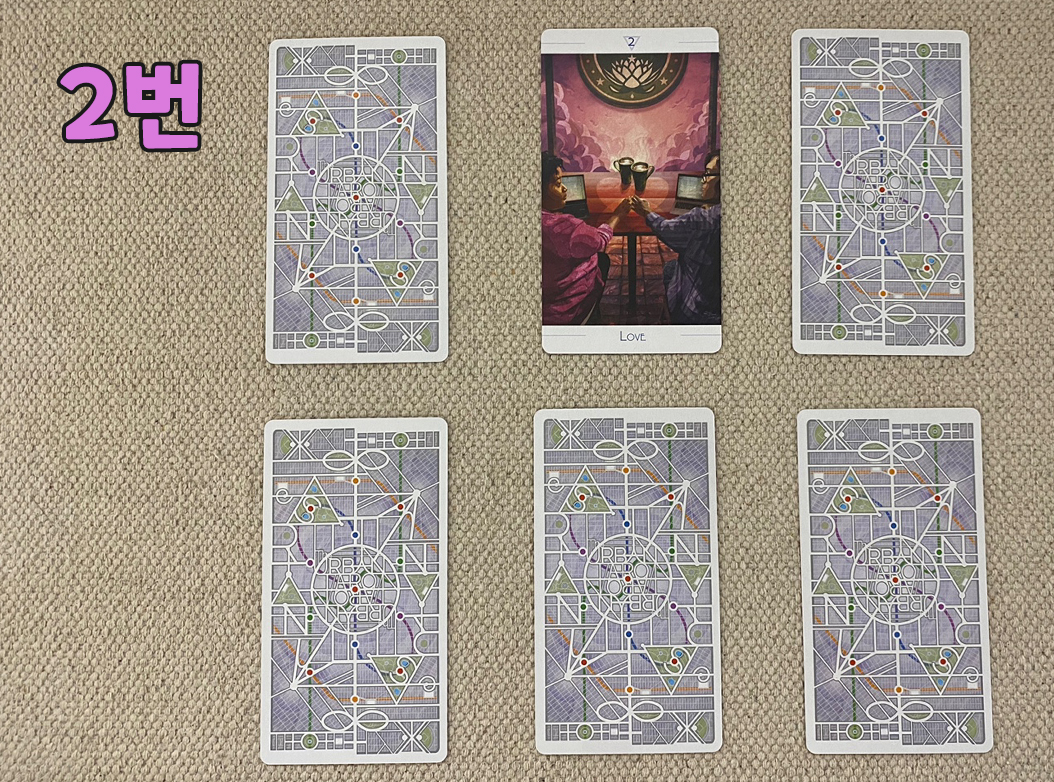 안녕하세요. 타로빈입니다. 오늘의 운세를 볼 타로 카드는 'The Urban tarot' 카드입니다. 도시적이며 현대적인 일러스트가 특징인 카드로 사이즈는 일반 타로 카드의 사이즈보다 아주 약간 큰 사이즈입니다. 뒷면도 도시를 나타내는 일러스트로 되어있습니다. 아래 번호 중에 마음에 드시는 번호를 하나 선택해 주세요. 정신을 집중하시고 하루를 떠올리며 골라 주세요.