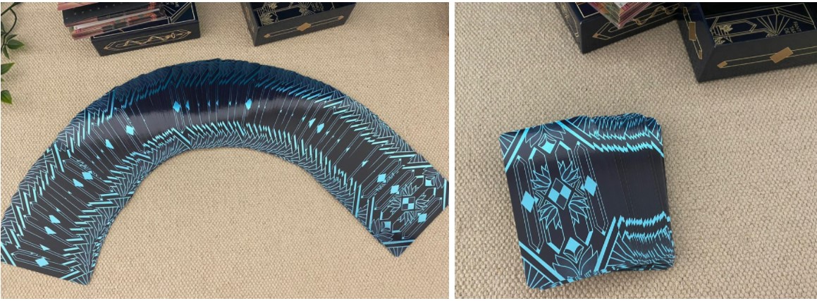 솔직히 카드의 포장 퀄리티가 높다는 생각은 안 들었어요. (사실 큰 기대도 안 하긴 했지만...) 이제 타로 카드 사진만 봐도 느낌이 딱 오잖아요? 코딩이 되어있는 하드박스에 들어있고, 박스를 열면 가이드북이 함께 있습니다. 2개의 보너스카드가 추가로 들어가 있습니다. 가이드북은 올 컬러로 되어있고, 속지가 고급스럽니다. 이건 전반적으로 광택감이 심한 타로 덱을 싫어하는 제 취향일 수 있어요.