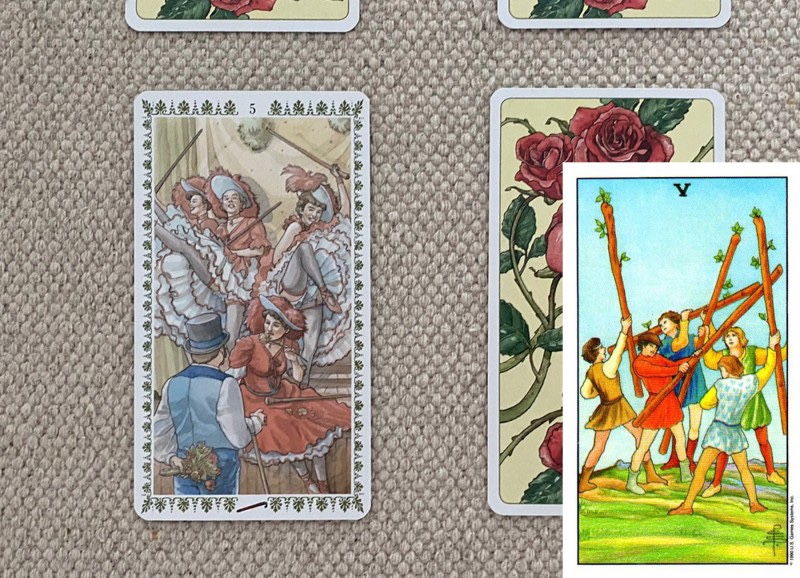 우리는 살면서 얼마나 많은 경쟁이나 갈등에 시달리고 있을까요? 이 카드는 심각한 싸움이나 경쟁을 이야기하지는 않습니다. 하지만 우리 삶에서 나타날 수 있는 사소한 싸움이나 경쟁을 의미합니다. 이 경쟁은 여러분의 친구와 할 수도 있고, 직장동료와의 경쟁의 될 수도 있겠죠. 또는 내면에서 수많은 자아와의 갈등일 수도 있습니다. 혼란스럽고 복잡해질 수 있는 날이지만 이것은 여러분을 성장시키는 자양분이 될 것이 분명합니다. 자신을 발전하게 하고 시간이 갈수록 더 나은 사람으로 만드는 것은 이런 사소한 경쟁심입니다. 그것을 오늘은 충분히 느끼고 경쟁을 즐기는 사람으로 거듭나는 하루가 되시길 바랍니다.