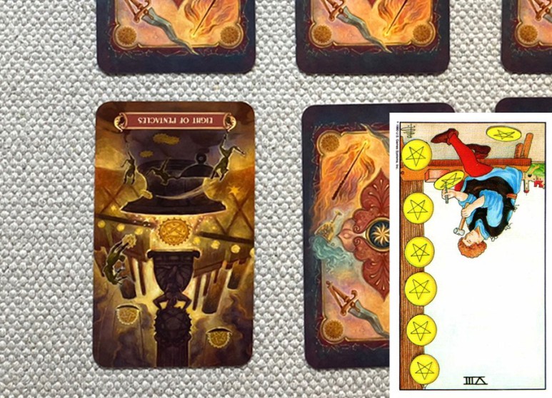 8펜타클의 경우 보통은 여러분이 원하는 것을 위해 여러분이 열심히 노력하고 있는 모습을 보여줍니다. 여러분은 아직 달려야 하는 시기이고 이 노력이 결코 헛되지 않을 것입니다. 하지만 역방향으로 나온 8펜타클은 여러분이 노력이 조금 더 길어질 수 있고 오늘 하루가 여러분이 생각했던 것보다 조금 더 힘들 수 있겠습니다. 노력을 많이~~해야 하는 날이 될 수 있어요. 원하는 목표에 도달하기 위해서 여러분이 계획했던 것들을 인내심을 가지고 밀고 나가야 합니다. 꾸준함을 이길 수 있는 건 없어요.