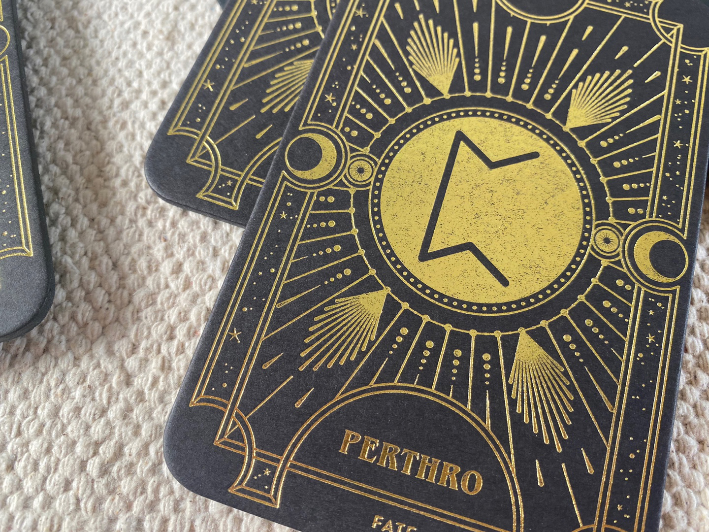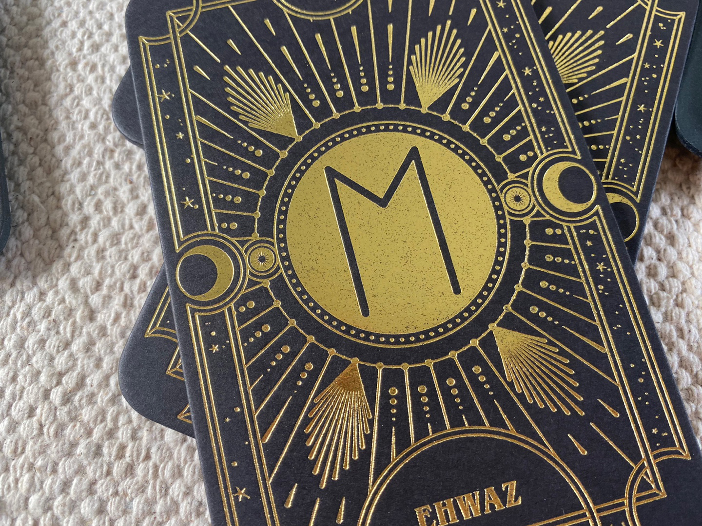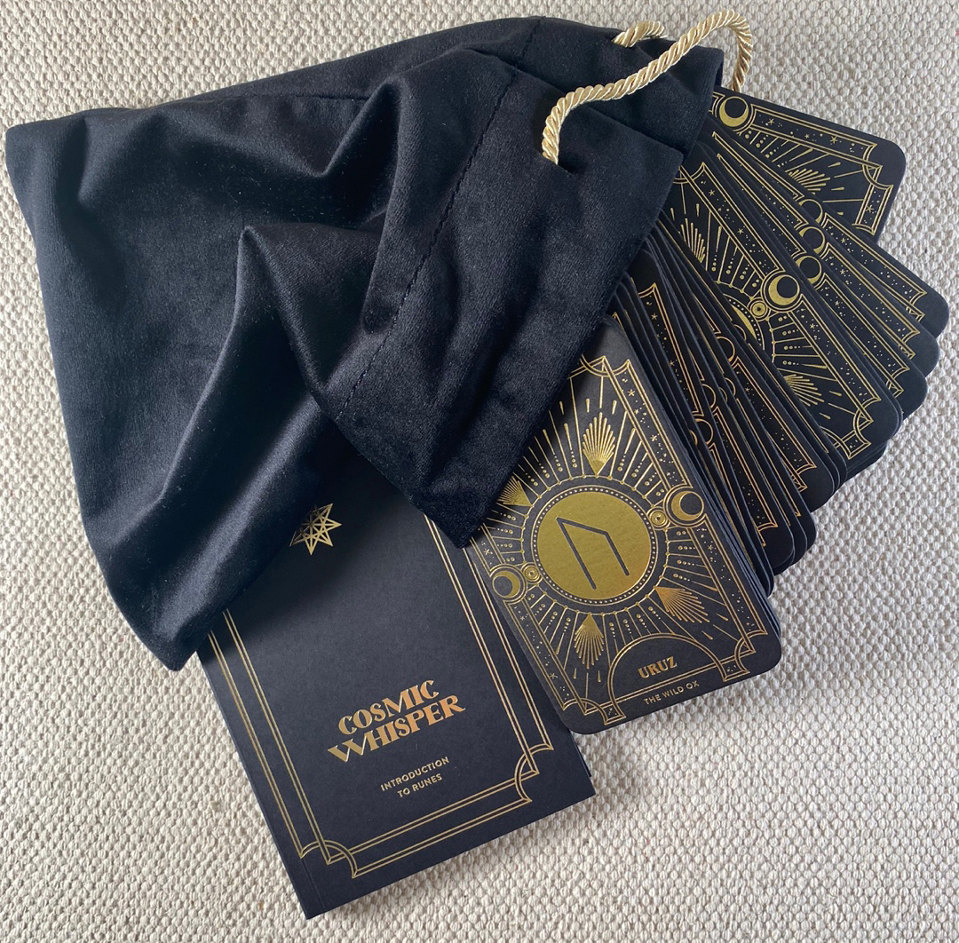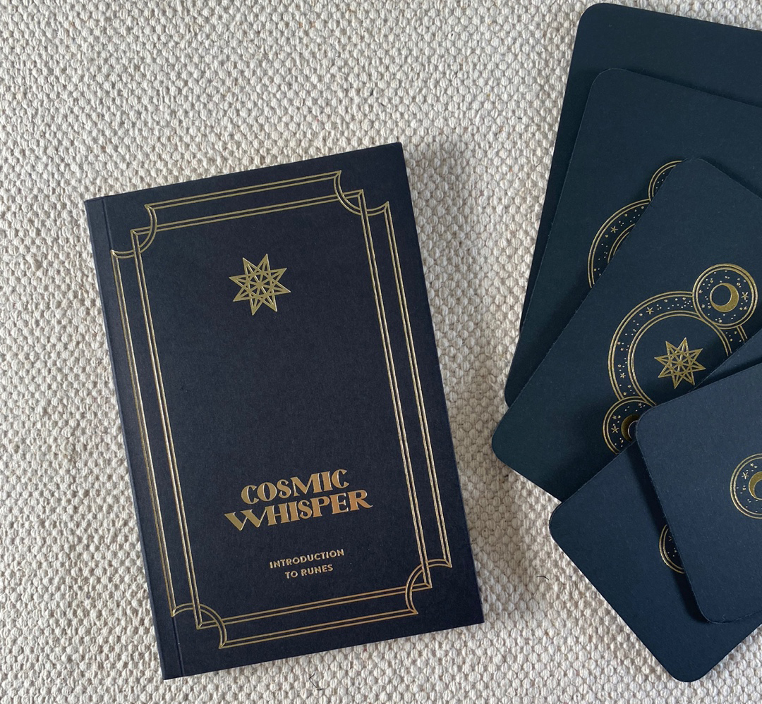 The original Cosmic Whisper Rune Deck 1st Edition was sold out in just 5 months. Thank you so much for all the love! This is Editon No2. In order to create this deck, we had to implement a unique process, due to its thickness and detailed gold foil. T