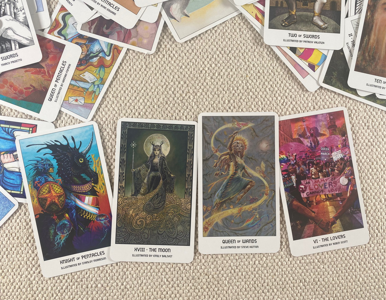 이 카드의 협업 목표와 함께 일러스트들 역시 성소수자의 인권에 대한 이야기를 하고 있습니다. 서로 사랑하고, 존중하고, 자신감을 지켜주고... 45명의 아티스트들은 자신의 타로덱에서 가져온 그림도 있고 새롭게 그린 그림들도 있다고 합니다. 한 장 한 장 의미를 보면서 카드를 본다면 이 카드의 매력을 더욱더 자세히 아실 수 있을 거 같아요. 제가 너무 좋아하는 카드 중에 하나입니다. 그래서 강력 추천하는 카드입니다.