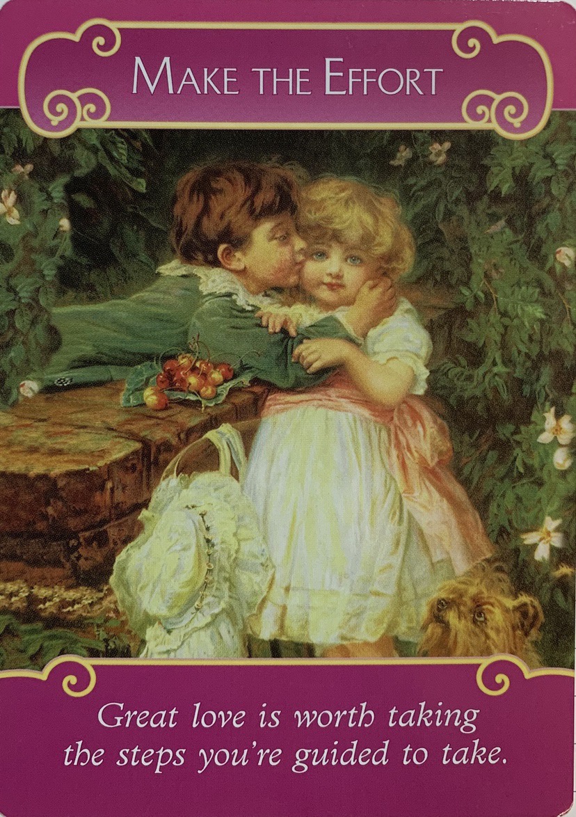 어떤 행동이나 노력을 해야 여러분이 사랑의 완성을 할 수 있다고 이야기하는 카드인 듯합니다.