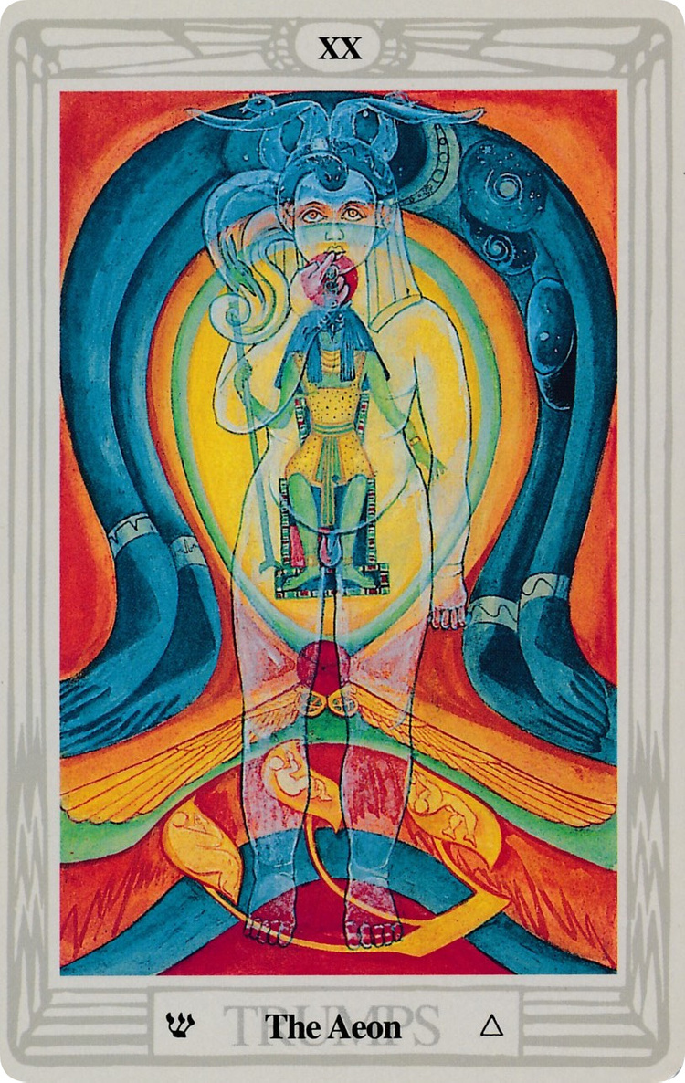- 이온 (The Aeon) 카드: 기존 심판 (Last Judgment) 카드가 부활을 의미했던 것과 달리, 새로운 시대 (The Aeon) 카드는 새로운 시대의 도래와 구시대의 종말을 의미한다. 이는 기존의 종교적 질서가 끝났고, 인간 의식이 새로운 단계로 발전했음을 나타낸다.