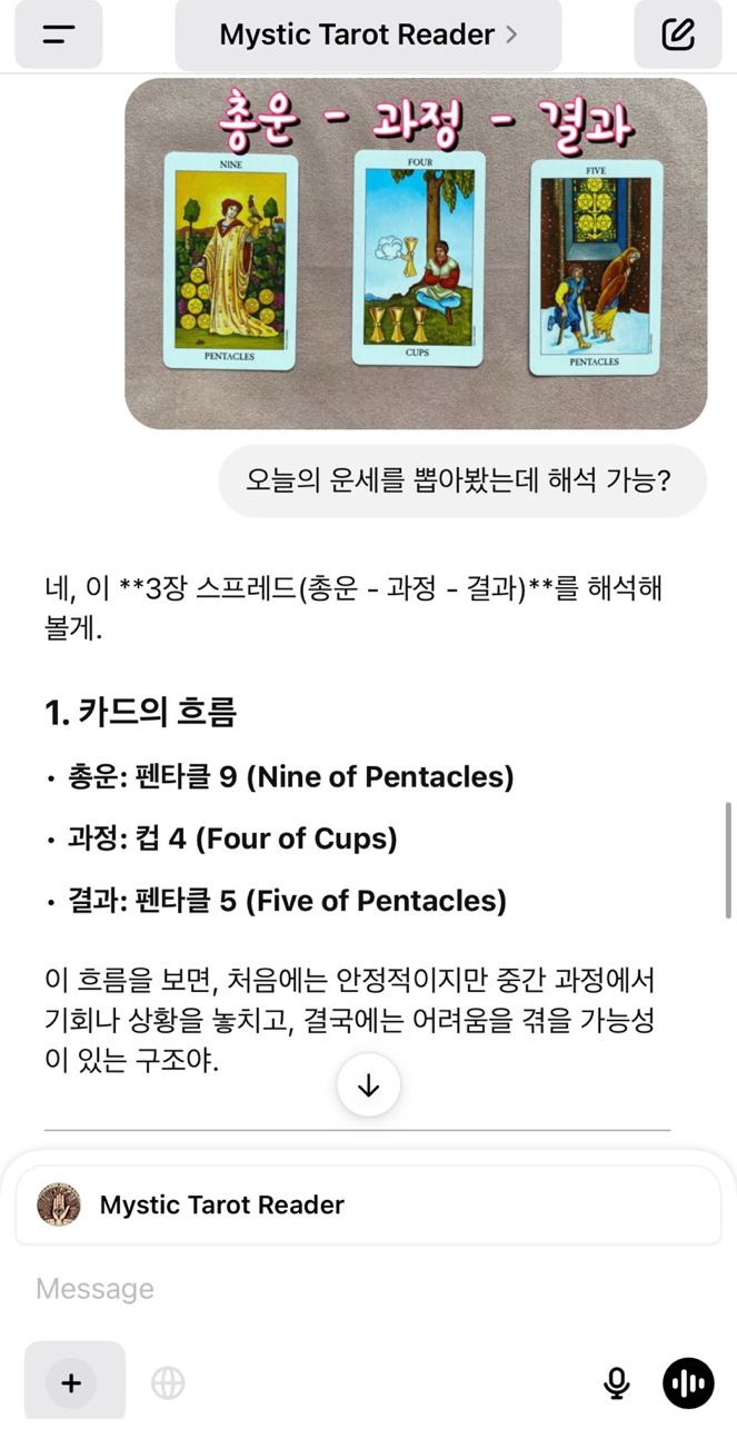 그럼 GPT에게 타로 해석을 시켜볼까요?